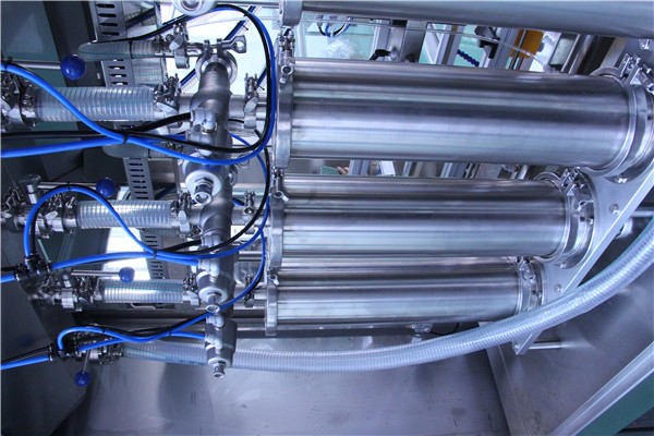 - 5 Като се има предвид различният вискозитет на материала на потребителя, ние специално поставяме специален клапан за пълнене, който да се адаптира към различни ситуации. и Ние също така проектирахме низходяща система за повдигане на пълнеж. За да направим падането на материала точно в устата на бутилката, проектирахме хоризонтално устройство за насочване на бутилката.